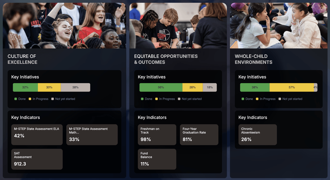 Our platform integrates key instructional and operational data, transforming raw numbers into meaningful intelligence. By connecting insights across student performance, attendance, staffing, and resources, we help districts make informed decisions that enhance student outcomes and streamline operations. With a focus on clarity and relevance, we ensure you have the right information at the right time—so every decision is backed by actionable insights.