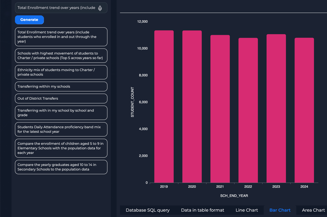 Innive K12 360° leverages advanced data and analytics to empower school districts, making information more accessible, insightful, and secure. Our platform includes AI-driven capabilities where they add value to streamline data analysis, automate reporting, and help uncover meaningful trends to support informed decision-making. With our private LLM, district staff can securely generate SQL queries and reports without requiring deep technical expertise. This ensures that critical insights are always within reach while maintaining the highest level of data security. By integrating AI-powered features within our robust analytics platform, we help districts harness their data more effectively and drive meaningful improvements in education.