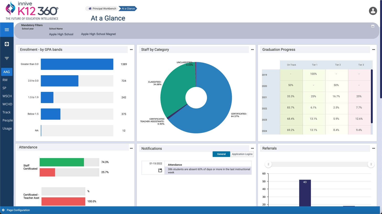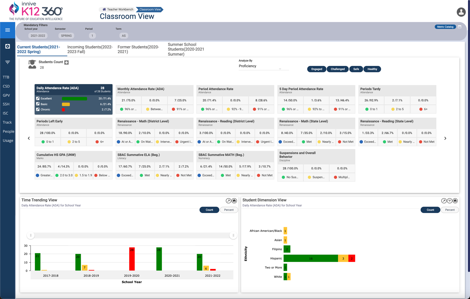 Your users and their roles are different. Their analytics should be different, too. The distinct perspectives of your teachers, principals, and district administrators are reflected in all role-based analytics delivered by Innive K12 360°. All products and services keep these roles and their needs in mind and incorporate feedback and guidance from experts in each role.