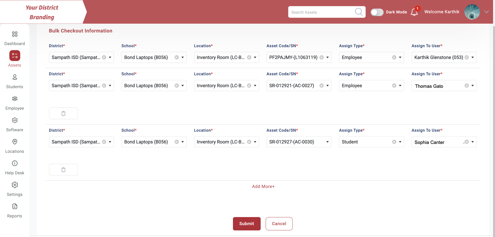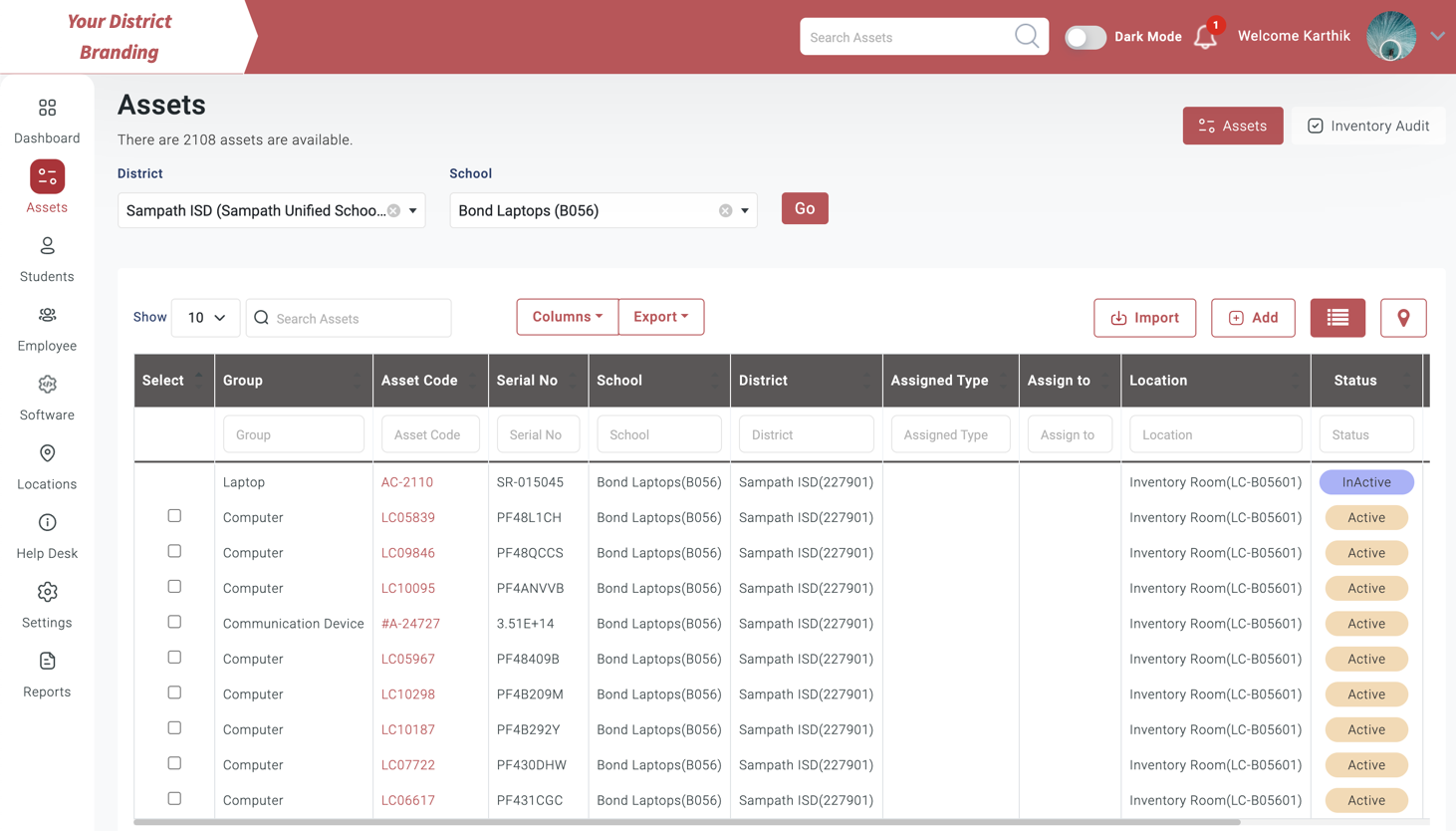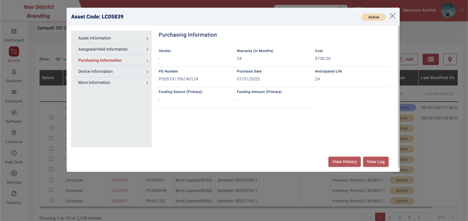 • Easily identify which device a student is assigned, how many devices the student has been assigned over time, and how many devices the student has lost or broken