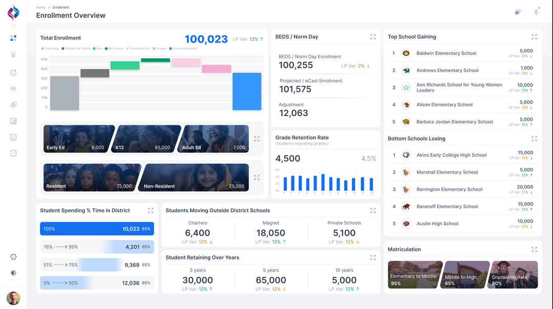 - Loss/Dropout Insights: Identify emerging patterns to address root causes and strengthen student retention.